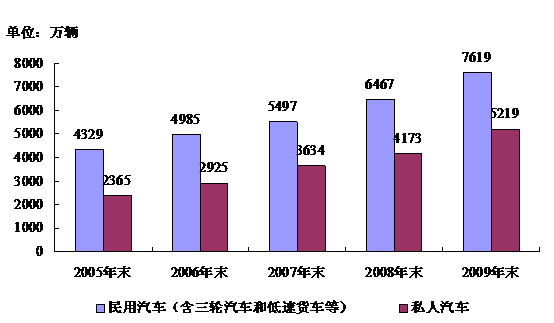 图1: 2005-2009年我国民用汽车保有量变化情况